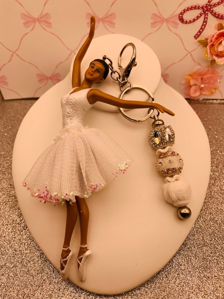 Clip this beautuful purse key ring to your purse or book bag and she can even hang from your car