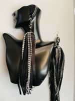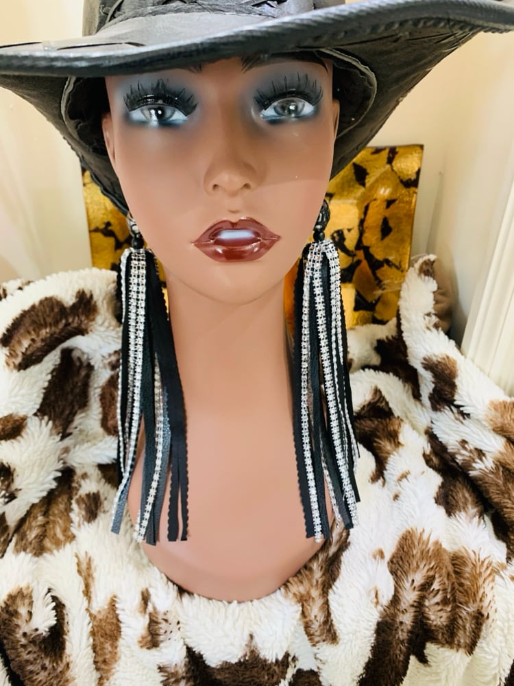 These beautiful handmade long and elegant earrings are made with Faux leather and rhinestone fabric with a beautiful bead on top they are light weight to most ladies and posts are hypoallergenic