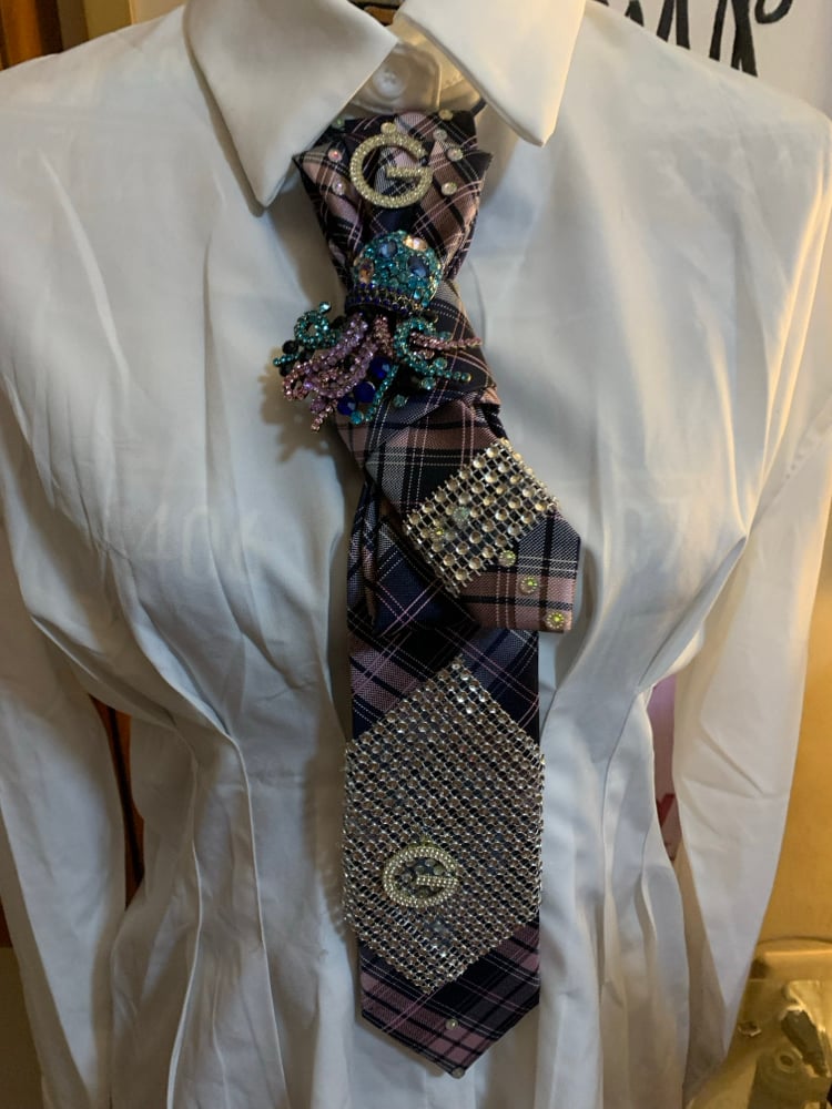 This necklace comes with a leather cord that you can tie around your collar OR you can wear with your favorite necklace