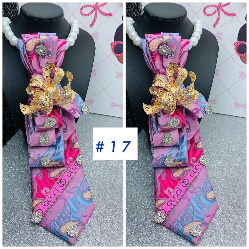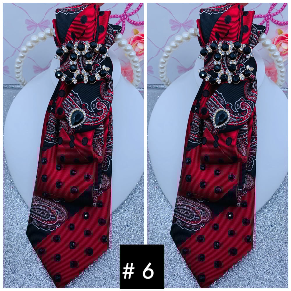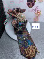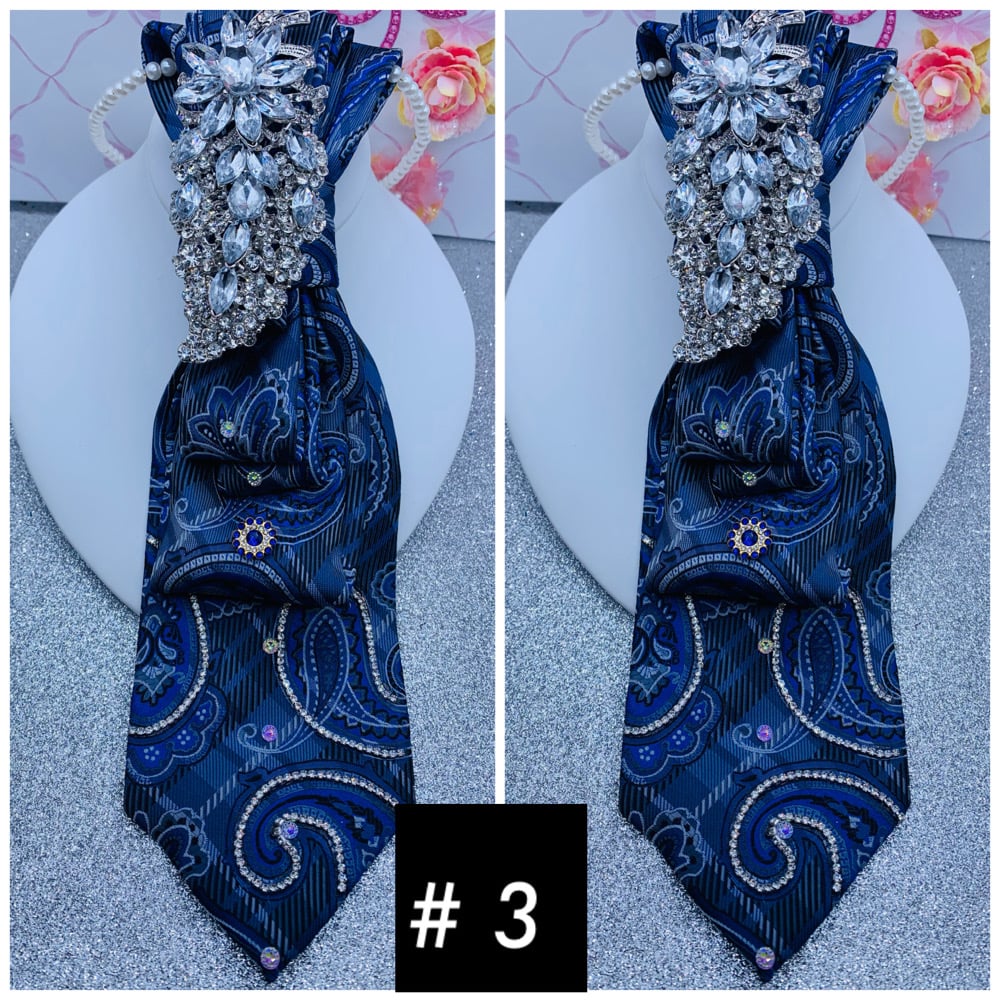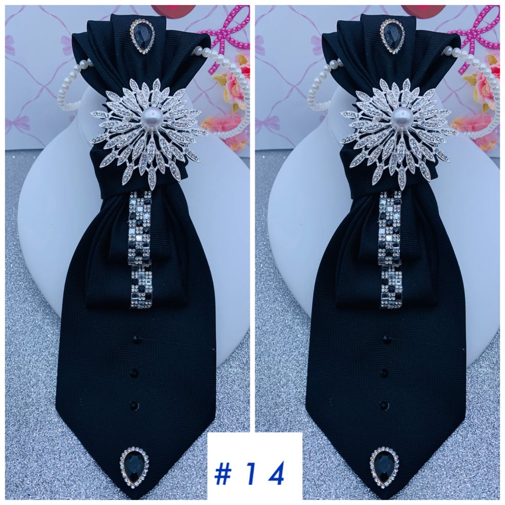 Make a beautiful statement with these one of a kind ties that come with brooches and a necklace