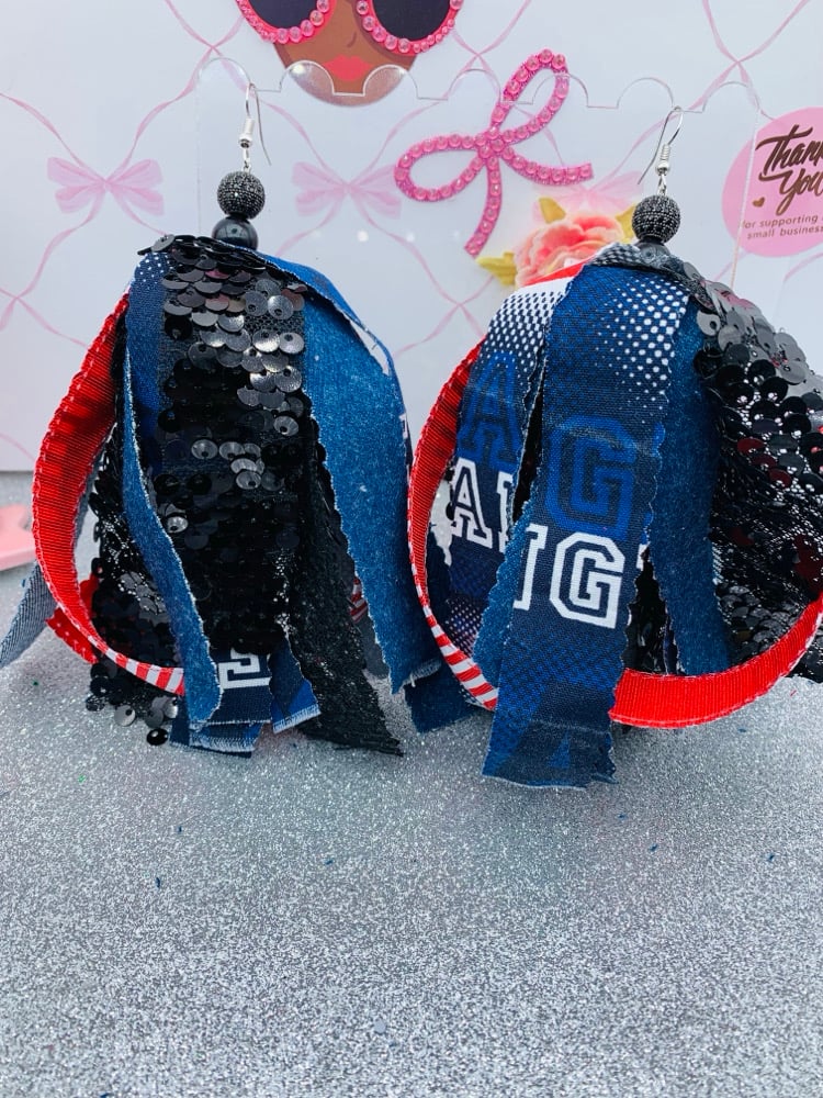 Hand Made earrings made with fabric and glass beads and rhinestone beads