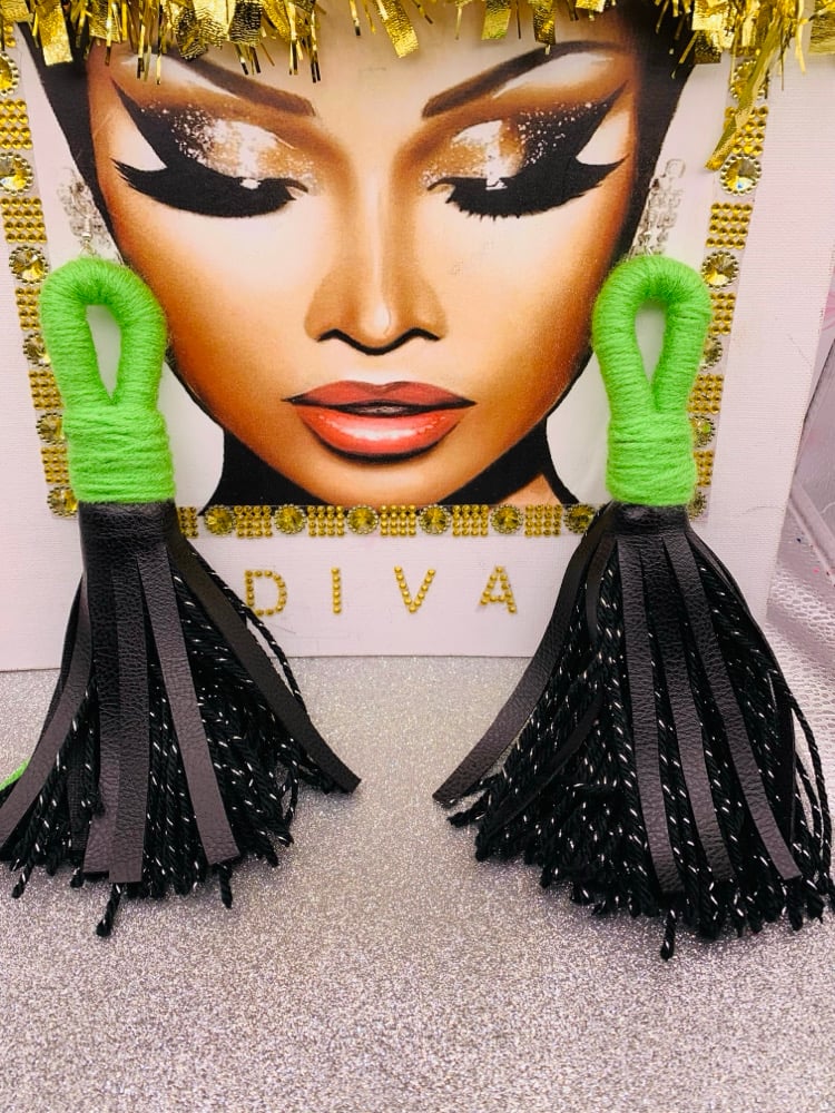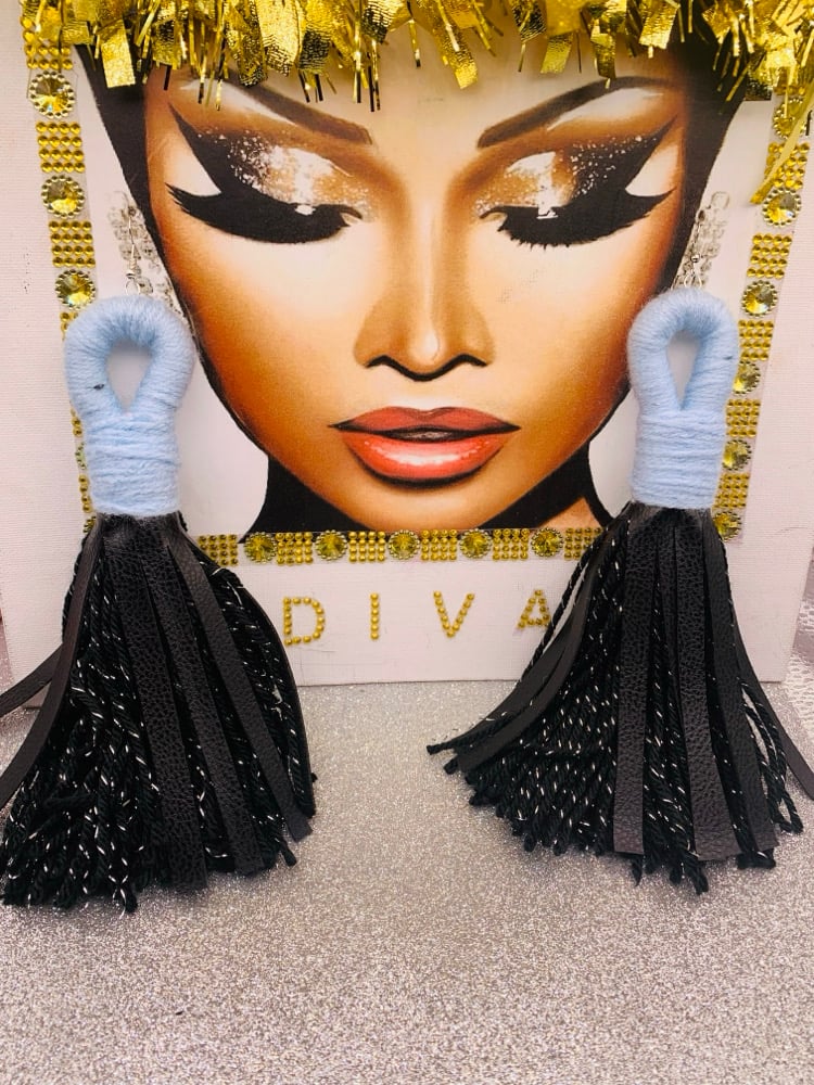 Hand made yarn/ faux leather earrings